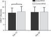 Anterior surface wettability (NIBUT) of the hydrogel contact lenses with both multipurpose disinfecting solutions (MPDSs) (study and control). The data show the average NIBUT values on days 15 and 30 for each MPDS. The error bars represent the standard deviations. * indicates a significant (p<0.05) difference between the control and study MPDSs on day 15.