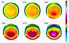 DiscussionThis study employed finite element analysis to evaluate the impact of initial corneal geometry on corneal shape changes during the onset of keratoconus. To this end, a mechanical model was used to generate a weak spot at various locations on emmetropic corneas. The observations provide detailed curvature and pachymetry data that showed different deformation patterns, reflecting how keratoconus might develop in response to the same structural weakness applied to normal corneas. The resulting topography maps clearly show how local weakening of the cornea leads to the formation of a cone nearby that location. Furthermore, for inferior weaknesses this goes accompanied by a flattening in the adjacent areas, as previously described.25